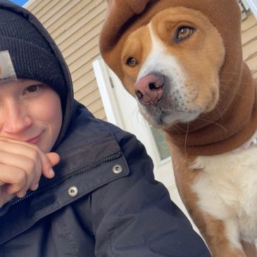 Felicia (Pictured here with her best friend Kilo) has loved dogs her entire life. Big dogs, little dogs, all sizes. She was always very curious about how they think the way they do. She is very good with learning different dog behaviors and is able to get them to co-exist peacefully in a yard with friends.